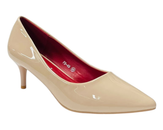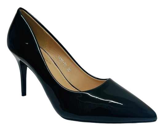 Pointed Toe Faux Patent Court Shoes