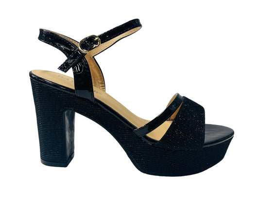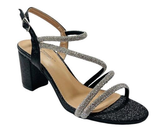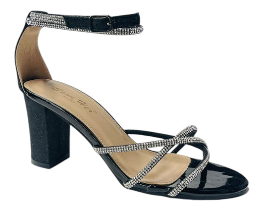 Glitter Ankle Strap Block Heel Diamante Shoes