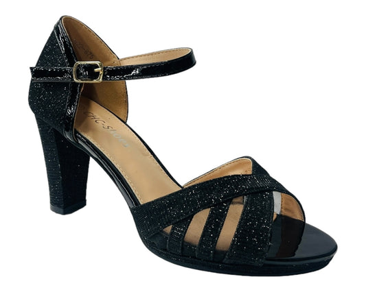 Diamante Block Heel Glitter Crossover Strap Shoes