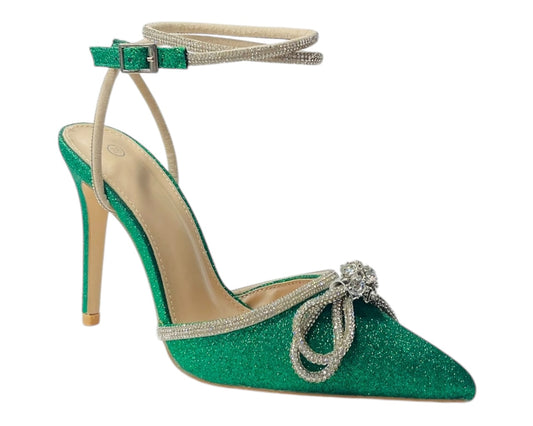 Ankle Strap Rhinestone Bow Stiletto Heel Shoes