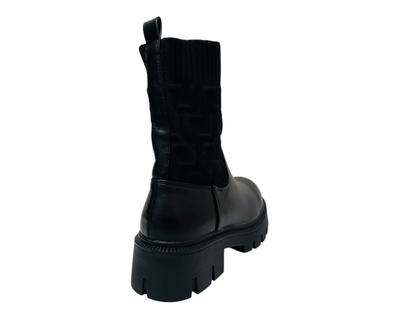Chunky Sole Faux Leather Knitted Ankle Boots