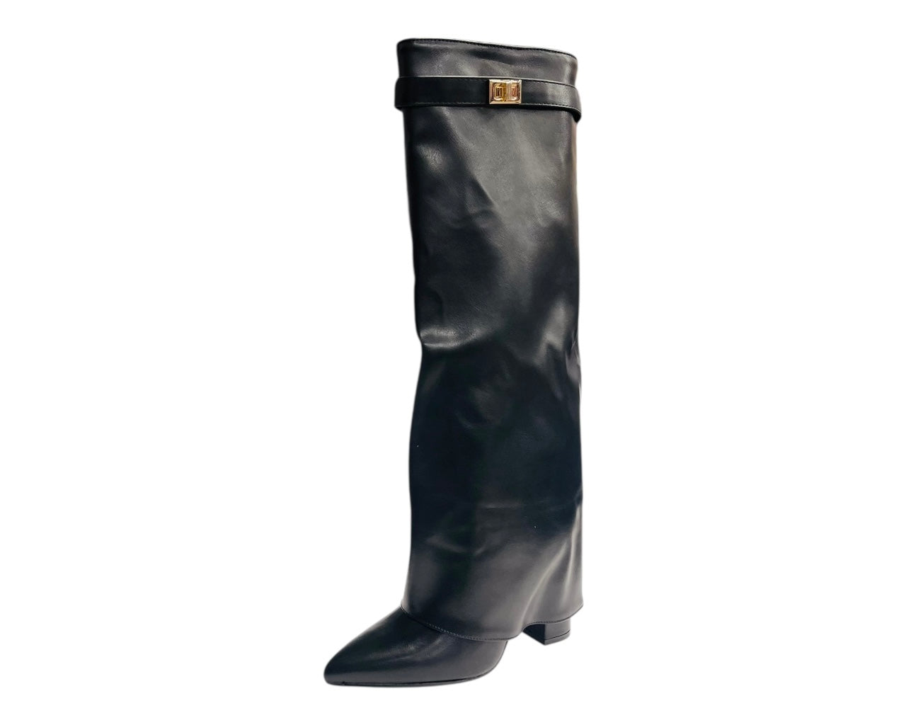 Knee High Faux Leather Fold Over Block Heel Boots