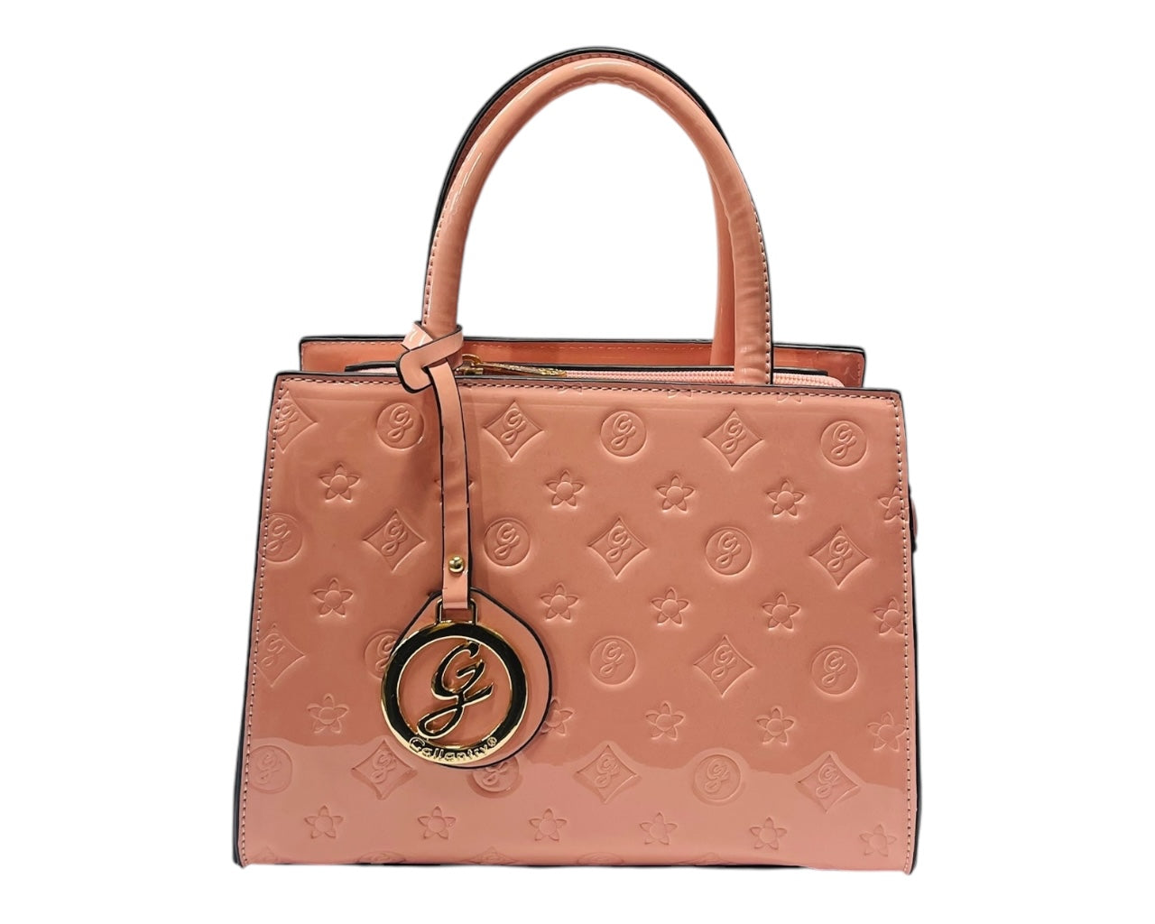 These faux patent leather upper with textile lining bags are created with longevity in mind. Zip closure, Inner small pocket with zipper & Pocket for accessories. Detachable logo detail charm at handle base. Adjustable & detachable shoulder strap.