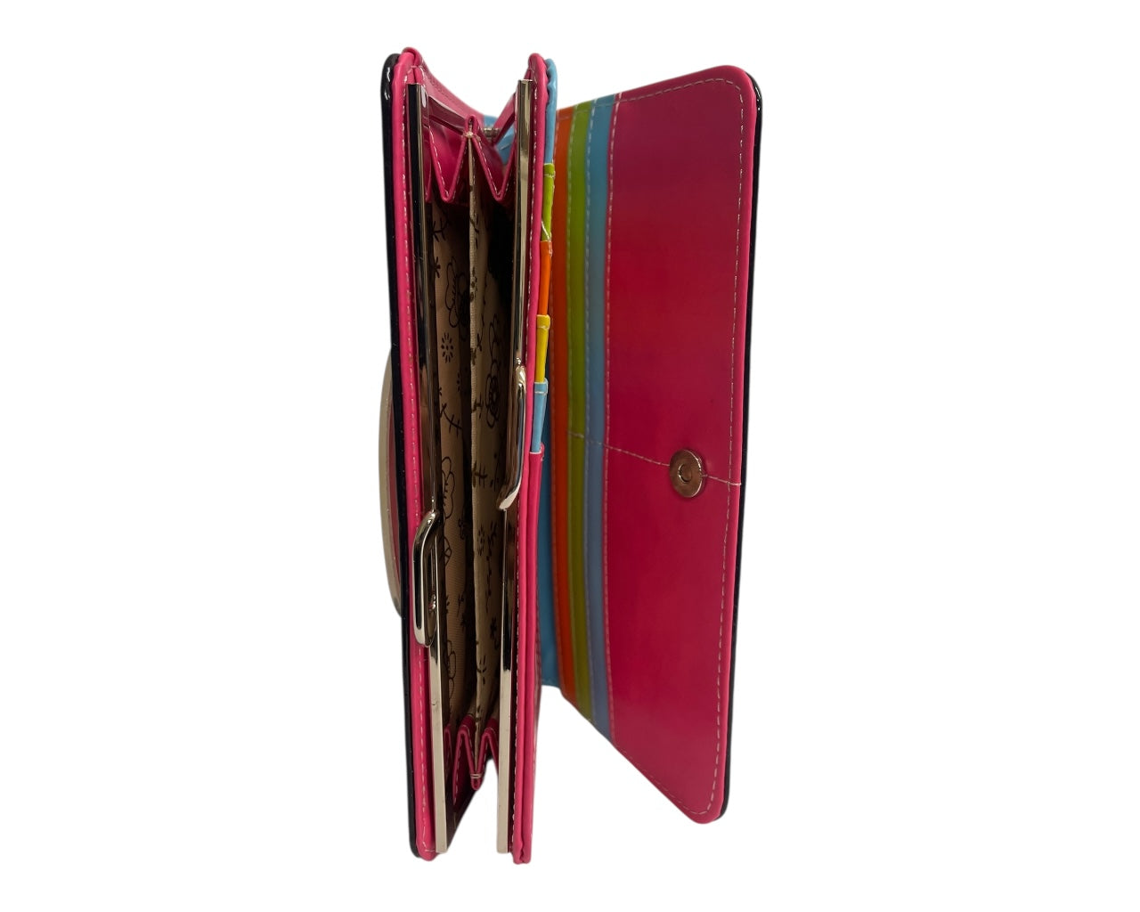This Women's Hello Kitty Wallet is a stylish purse perfect for travel or everyday use. With card slots and a coin purse, this wallet is practical and compact (19cm width, 10cm height, 2.5cm depth). The exterior is made of synthetic material with a cute Hello Kitty character design with a mirror underneath, while the lining is a multicoloured fabric. The wallet features a magnetic and snap closure for security, making it a fun and functional accessory for any woman's handbag collection.